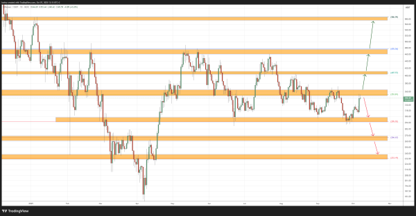 • Nach dem zinsbullischen Anstieg der letzten Tage trieb das Lager der Käufer den Kurs auf ein neues Monatshoch und erreichte die Widerstandszone um das Vormonatshoch von 353 US-Dollar. Gelingt den Käufern ein nachhaltiger Durchbruch durch die Zone um die Zwischenhochs vom September, dürfte der Kurs in Richtung 407 US-Dollar steigen. Dies gelang Bittensor im August nicht.