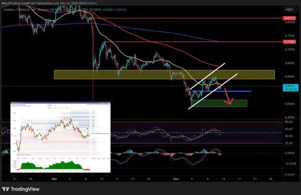 Wenn diese Zone hält, besteht die Möglichkeit, dass sich ein größeres W-Muster bildet, das als klassisch bullisch gilt und oft den Beginn einer Umkehrphase markiert. Sollte die Unterstützung jedoch brechen, ist ein weiterer Ausverkauf wahrscheinlich, bei dem ADA auch unter die 50-Punkte-Marke im RSI (Relative Strength Index) fallen könnte, was ein Zeichen für zunehmende Schwäche wäre.