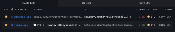image A wallet linked to Alexey Ivanov-Bilyuchenko, co-founder of the collapsed crypto exchanges BTC-e and Wex, lost 6,500 bitcoins worth $694 million, according to the VChK-OGPU Telegram channel, which is close to Russian security forces.