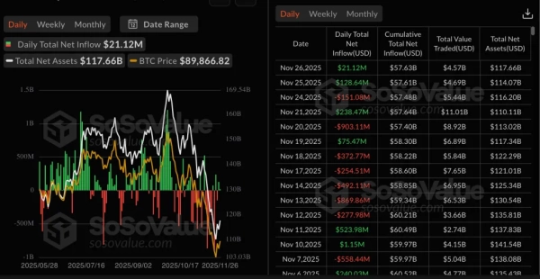 Despite two days of $129 million in inflows, the overall trend remains negative. Since the beginning of November, ETFs have lost $3.5 billion—the second-worst performance since their launch.