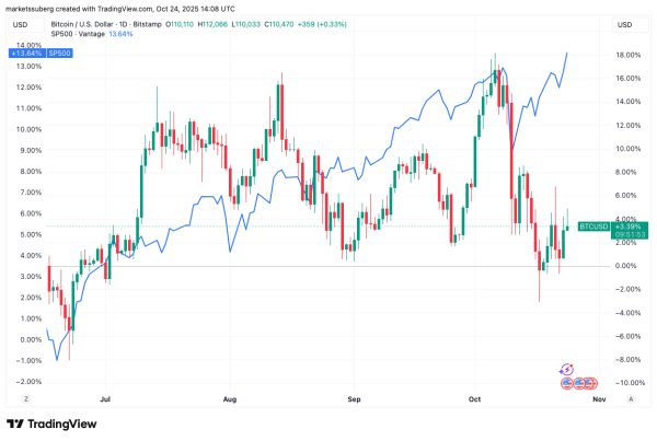 BTC/USD daily chart compared to the S&P 500. Source: TradingView.