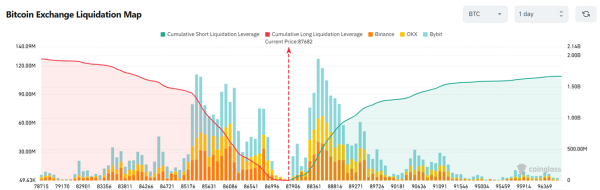 According to Coinglass, if the price exceeds $89,000, short positions worth $958 million could be liquidated. A similar fate awaits long positions if the price breaks below $86,000. The volume of forced liquidations in this case would be $768 million.