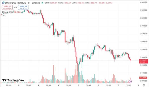 Ethereum's price has fallen 4.6% in the past 24 hours and 15.7% over the past seven days. At the time of writing, the second-largest cryptocurrency by market cap is trading around $3,200.