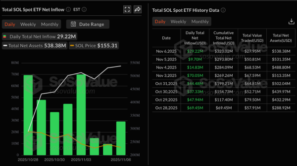 Spot Solana ETFs have seen inflows for the eighth consecutive day, reaching $29 million in the past trading day. Since launch, these instruments have received a total of $323 million.