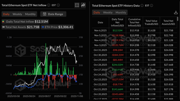 Ethereum spot ETF outflow and inflow dynamics. Source: SoSoValue.
