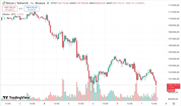 On November 7, the price of the first cryptocurrency fell below the psychological mark of $100,000 – to ~$99,900.
