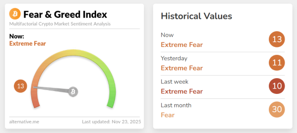 Furthermore, investor and trader sentiment remains in the “extreme fear” zone, according to Alternative.me.