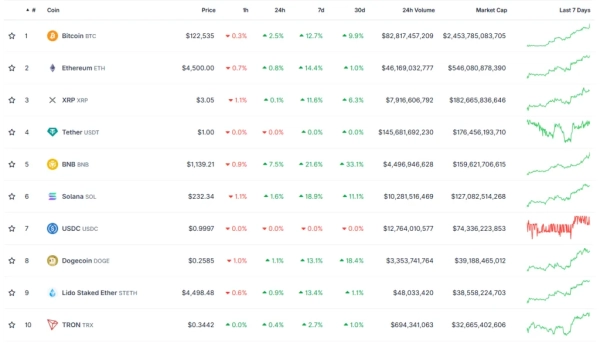 On the evening of October 3, the leading cryptocurrency rose above $123,000, and Ethereum surpassed the $4,500 mark.