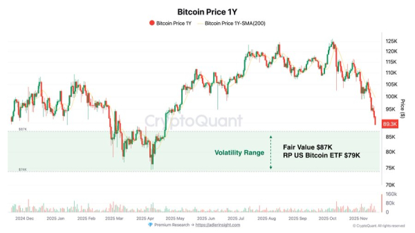 On the morning of November 18, the Bitcoin (BTC) price fell below $90,000, deviating more than 29% from the all-time high of $126,200 reached in October.