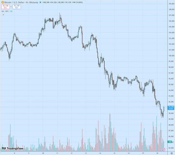 Bitcoin tests $90,000 amid liquidity concerns and Wall Street selling
