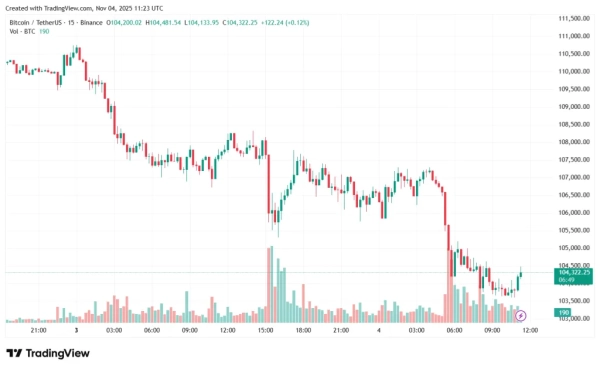 Bitcoin price is ~$104,300 (-3.4% in 24 hours).