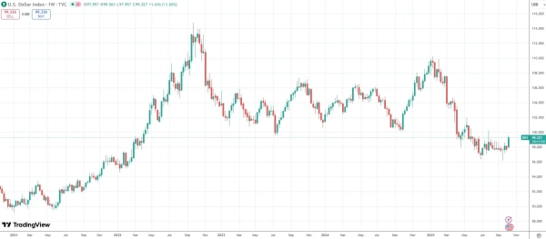 The decline in the US dollar is clearly reflected in the US dollar index (DXY), which measures its exchange rate against a basket of currencies.