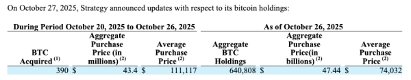 Including the latest purchase of 390 BTC, Strategy accumulated 778 BTC in October. This is one of the smallest monthly results in its history.