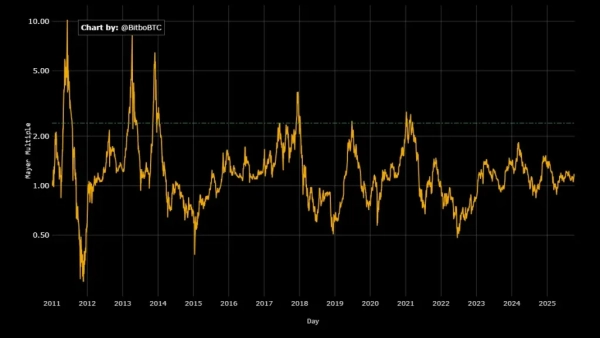 At the time of writing, the Mayer Multiple is at 1.14. Meanwhile, digital gold is trading around $121,360—3.6% below its ATH reached on October 6 (according to CoinGecko).