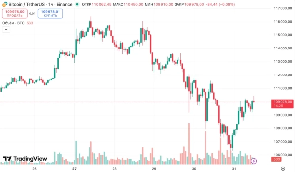 At the time of writing, the leading cryptocurrency is trading at around $110,000. Over the past 24 hours, the coin's price has fallen by 0.3%.